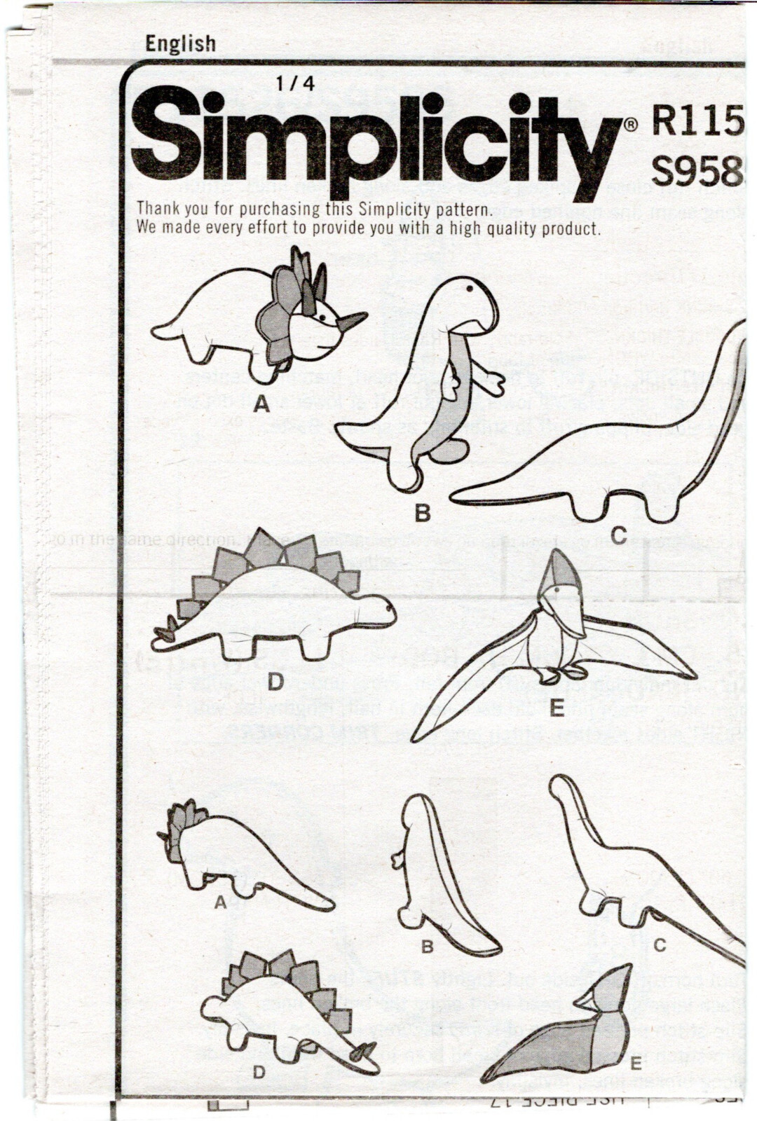 034 Plush Dinosaurs 034 C 2022 Simplicity Sewing Craft Pattern R11526 New Amp Uncut Ebay